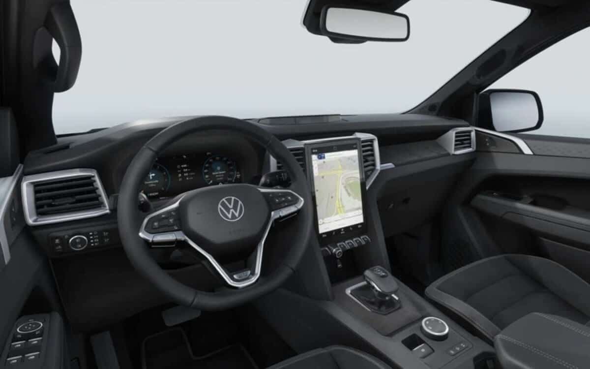 El interior también presenta cambios interesantes y a tono con los descritos en la estructura exterior. Volkswagen dotó a esta Amarok Dark Label por un ambiente oscuro que combina sofisticación y deportividad.